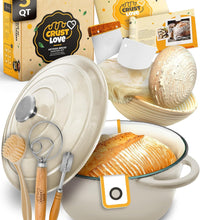 Elevate your home baking with this comprehensive enameled cast iron Dutch Oven, designed for crafting authentic bread, including sourdough. This set equips you with everything you need to achieve perfect loaves with that desirable crispy crust.